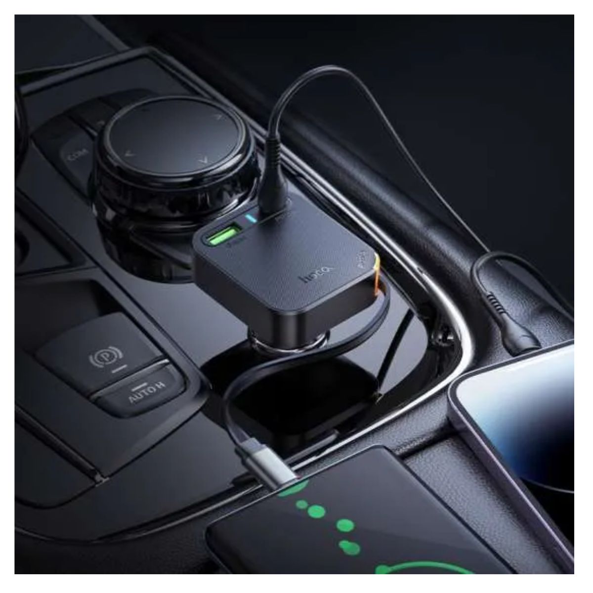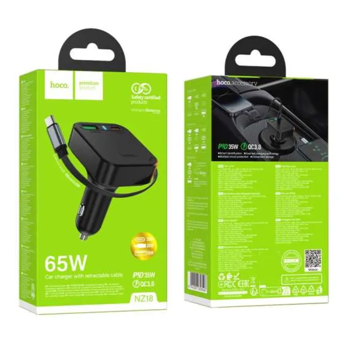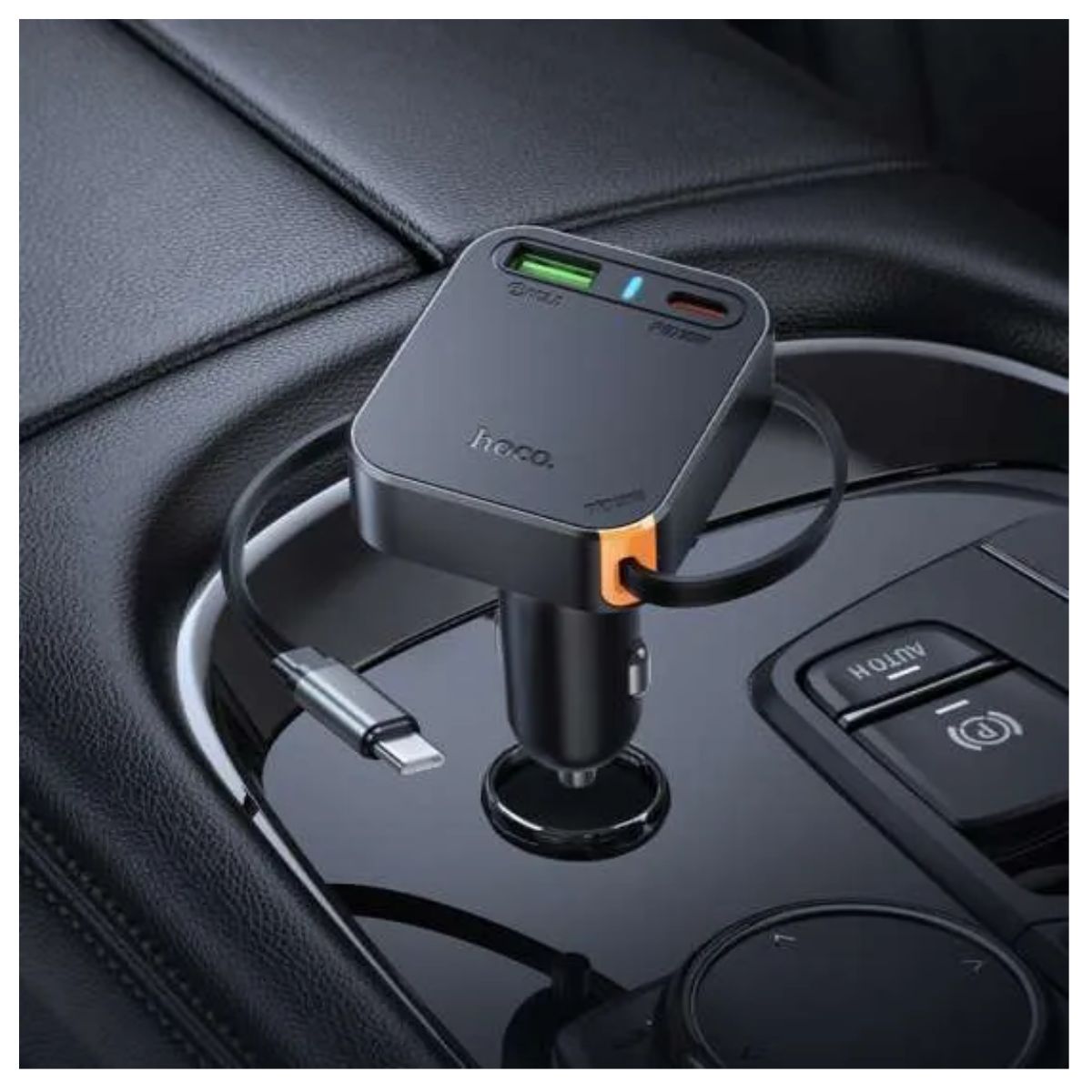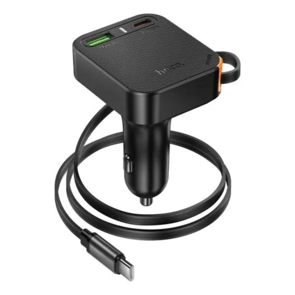 Cargador para coche HOCO PD65W con cable retráctil.