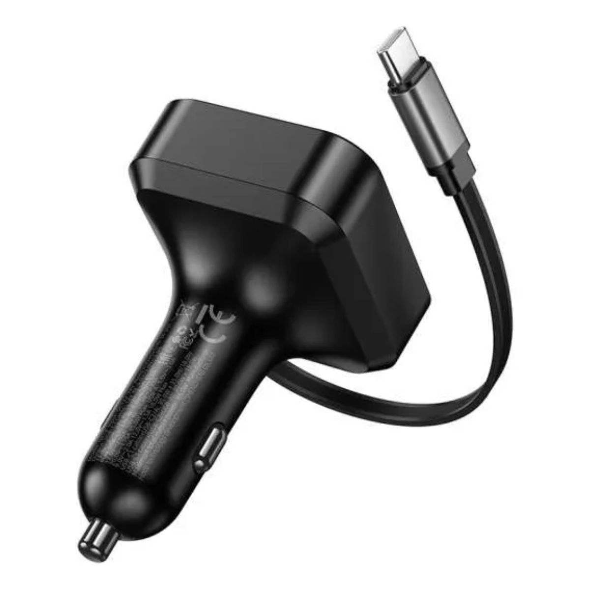 Cargador De Auto Usb + Usb C Con Cable Retráctil Pd 65w