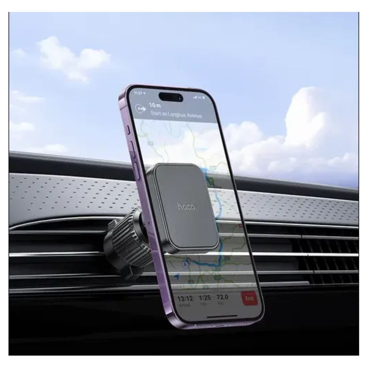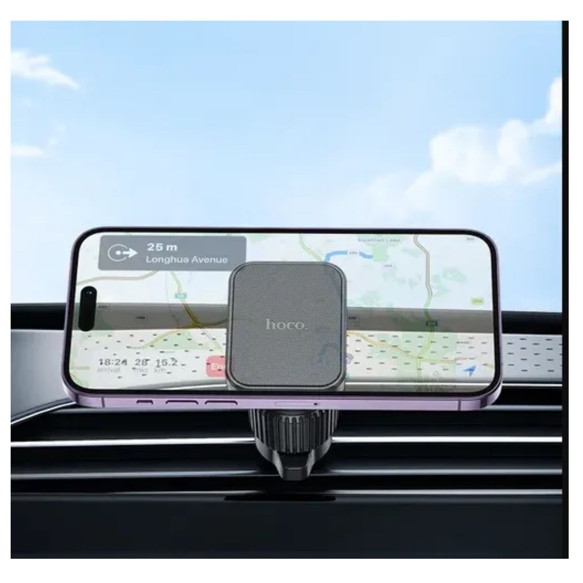 El Soporte Celular Magnético Hoco H32 es una solución práctica para mantener tu smartphone siempre visible y seguro mientras conduces. Se instala directamente en las rejillas de aire del auto, permitiéndote tener tu teléfono a la vista sin ocupar espacio en el tablero ni bloquear la visibilidad.
